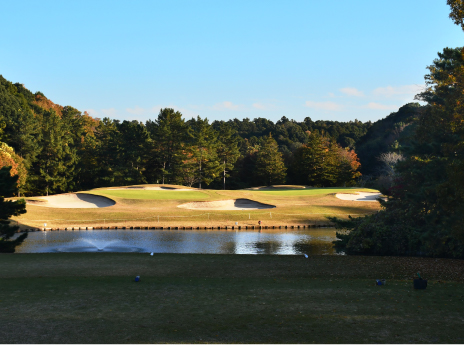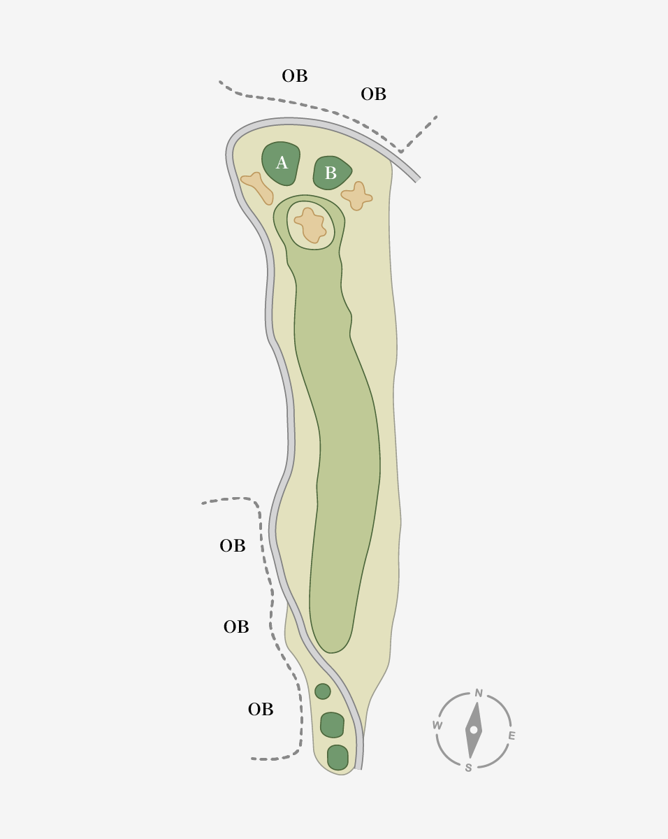 ティーショットはフェアウェイ右サイドへ豪快に飛ばしたい。第2打はグリーン手前に大きなフェアウェイバンカーがあるため、これを避けるのが攻略のカギ。