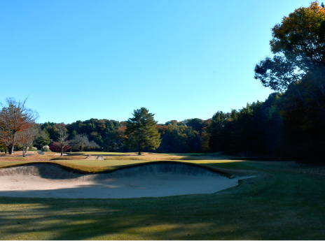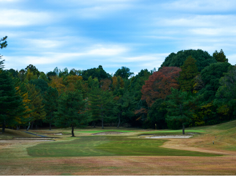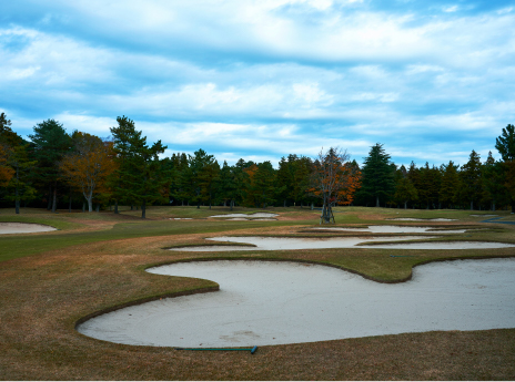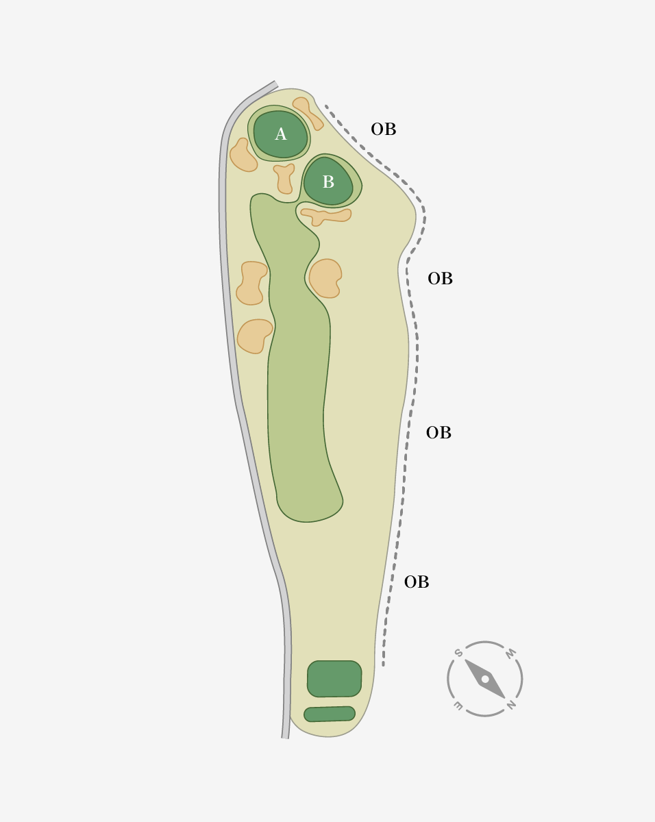 ロングヒッターは要注意のホール。250Y付近はフェアウェイが絞られており落とし所が重要。
