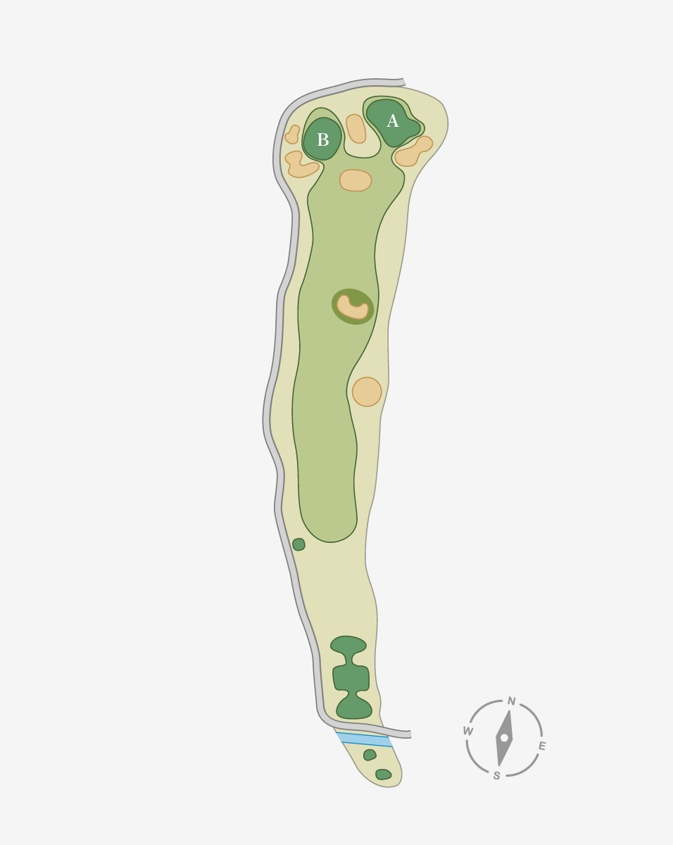 距離のあるミドルホール。フェアウェイの左サイドへ豪快に飛ばしたい。ドラコン推奨ホール