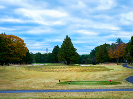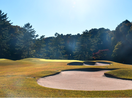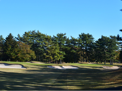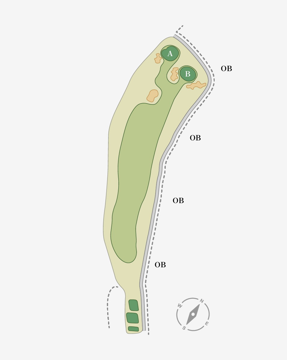 距離のあるロングホール。ティーショットはフェアウェイ左サイド狙い。第2打は左クロスバンカーに注意。